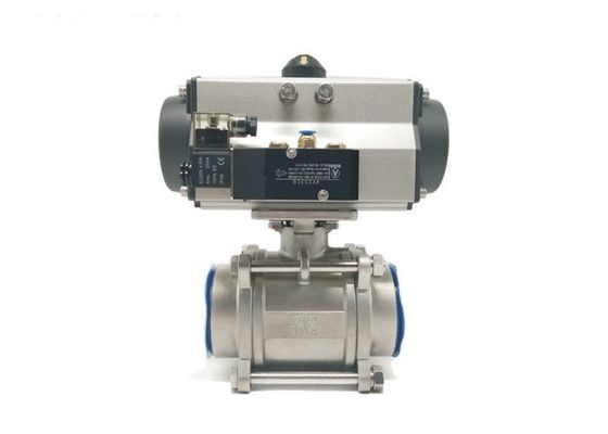 3 morceaux de filet de vis à tournant sphérique de double actionné pneumatique de robinet agissant avec la vanne électromagnétique